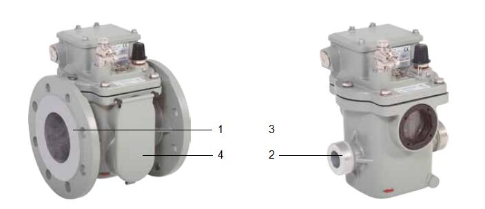殼體是由耐氣候變化的鑄鋁合金制成,表層已涂色. 依照結(jié)構(gòu)設(shè)計(jì)形式可分為法蘭盤(pán)(圖3中1)連接或螺紋連接(圖3中2). 對(duì)殼體的變型品種選項(xiàng)將在下文第5點(diǎn)(單浮子瓦斯繼電器)和第7點(diǎn)( 雙浮子瓦斯繼電器)中加以說(shuō)明. 其他選項(xiàng)歡迎垂詢(xún).